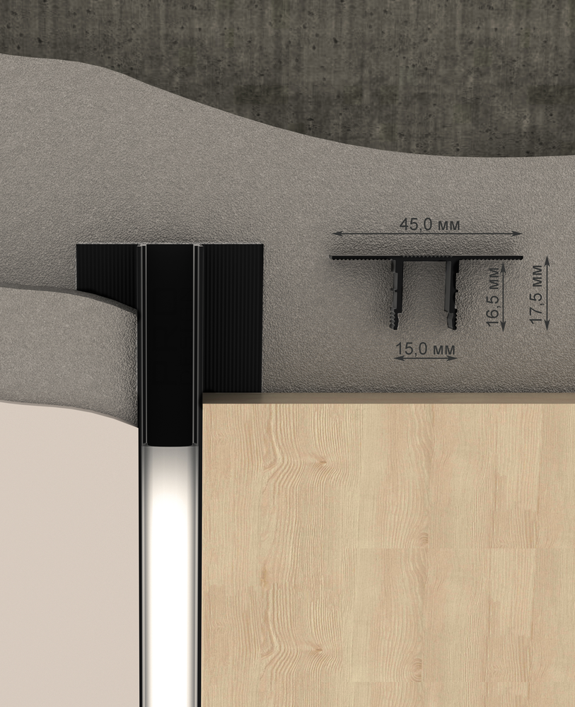 Декоративный, разделительный профиль Pro Design монтируется на этапе ремонтных работ на бетонную или гипсокартонную поверхность, а светодиодная лента (шириной 8 или 10 мм) монтируется внутри самого профиля. Далее разделительный профиль закрывается рассеивателем, обеспечивающим мягкое свечение. Выбирая led-ленты с диммером, различными цветами и оттенками можно реализовывать разнообразные сценарии световых дизайнерских решений.