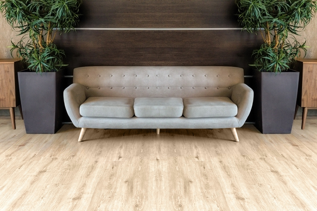 SPC полы представляют собой многослойную структуру из кальциево-полимерной основы высокой прочности, декоративного покрытия и полиуретанового защитного слоя. По плотности каменный ламинат сравним с керамогранитом.