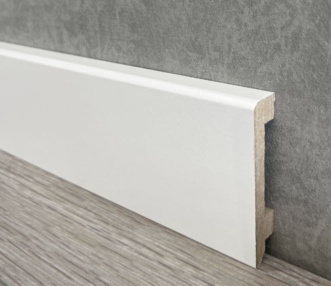 Плинтус производителя OHZ не требует окраски и подходит для всех типов напольных покрытий. Устанваливается с помощью клея. Высокая плотность материала 600-750 кг/м3 обеспечивает устойчивость к повреждениям.