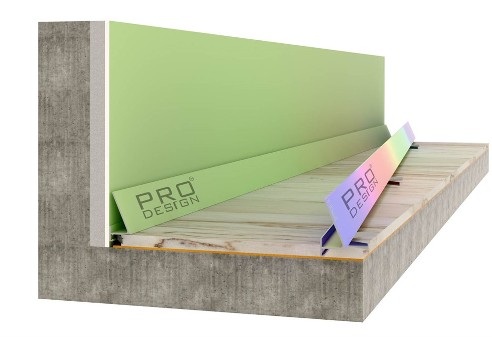 Наклонный алюминиевый плинтус Pro Design Corner 570 поставляется в комплекте с 6 пружинами.